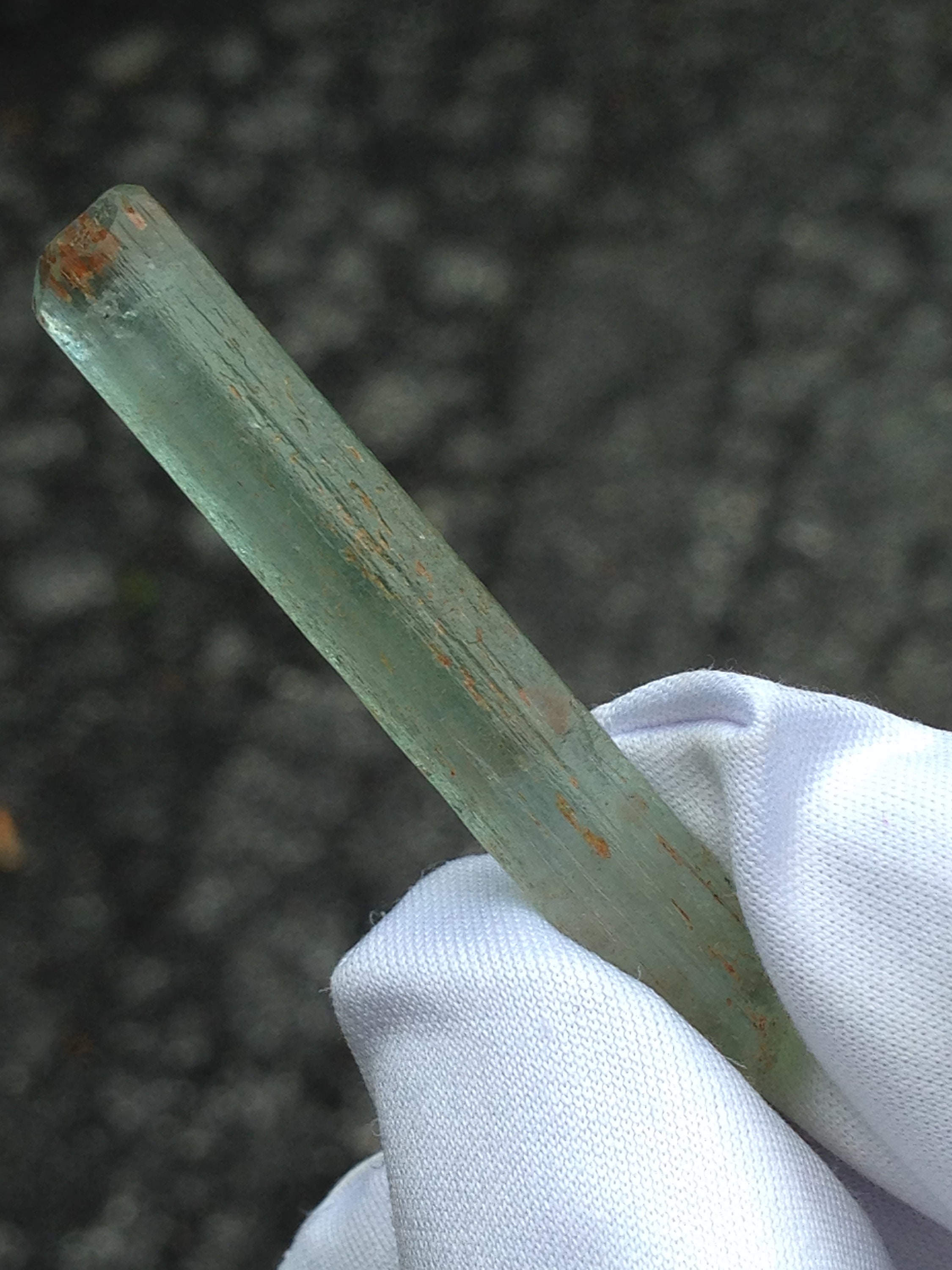 ATTENTION! This listing Contains 10 photos. Please switch to a web browser if you are only able to see a total of 5 listing photos. Thanks for understanding! This listing is for the exact aquamarine crystal shown in the photos. It is 100% natural. This piece here comes from Befotaka Sud District Atsimo-Atsinanana Region Fianarantsoa Province in Madagascar. It weighs 4.408 grams / 22.04 carats and measures 49.06mm x 8.04mm x 5.49mm. It has a semi-tabular hexagonal shape. This prismatic beryl has a lovely light greenish teal blue color that is quite common for natural specimens from this locality. It is double terminated with attractive top faces and an elestial type etched bottom termination. Light striations can be observed on the body, as well as some minor iron staining which can be removed. The iron staining inside of the top termination highlights negative crystal growth tubes that also appear at the top of the crystal in the form of little needle holes. This is an excellent crystal for beryl collecting. I acquired this crystal from a friend of mine who got them directly from the broker of the mining operation in Madagascar. I like Madagascar beryl because it has a soothing, tranquil energy that helps me stay in conscious Divinity with the Gaian mind. Feel free to contact me with questions. Thanks for looking!