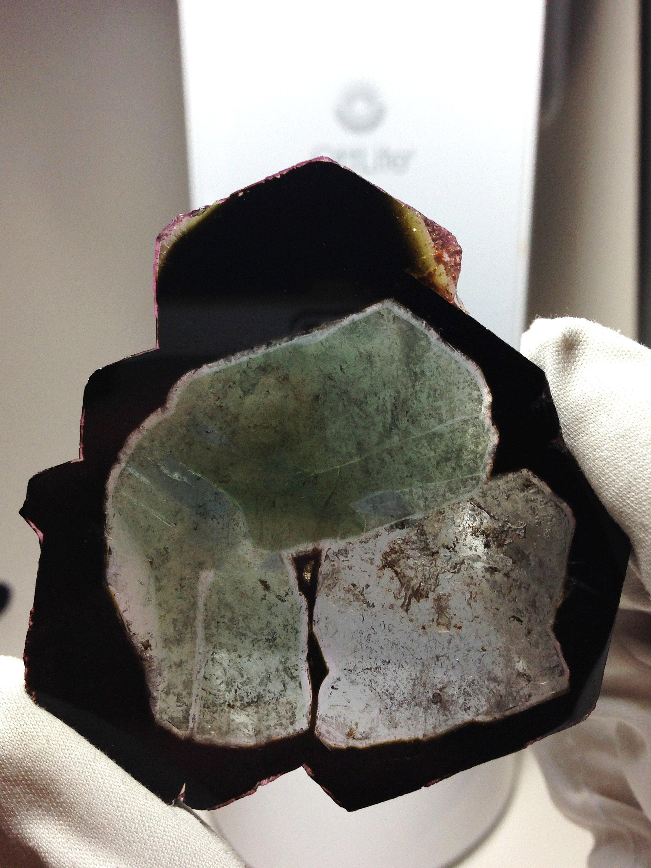 This listing is for the exact Tourmaline slice shown in all 10 photos. Please use the URL provided below to view the Facebook Video. Thank you!